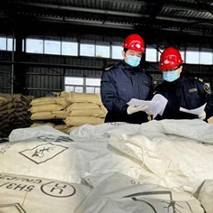 海关工作人员对出口的危险化学品进行查验。 银川海关供图