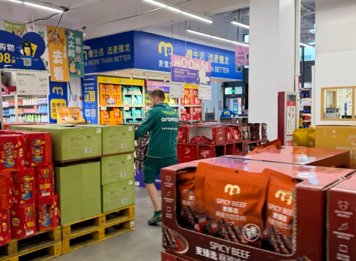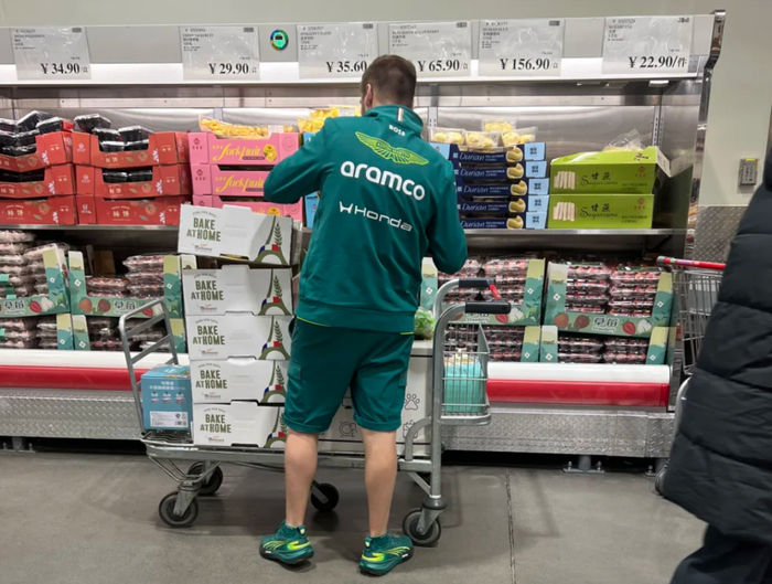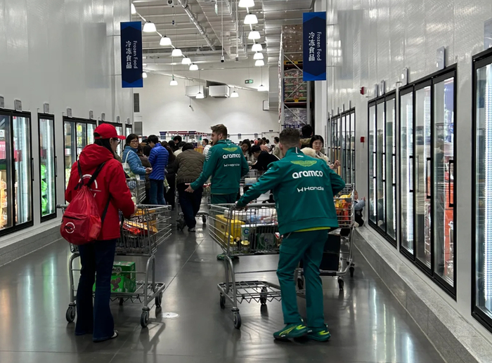 还有网友在各大商超偶遇了,身穿阿斯顿马丁制服的工作人员在进行大采购。