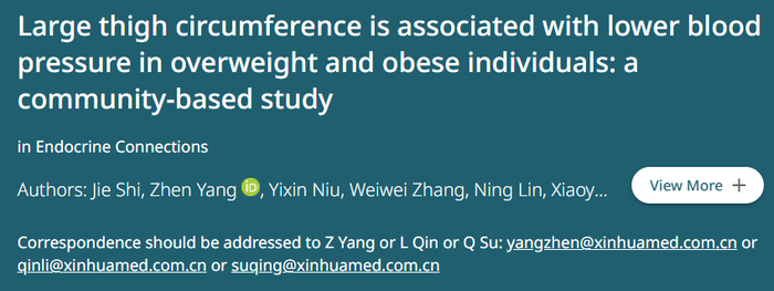 2020年,上海交通大学的研究人员在国际期刊《内分泌联系》上发表研究显示,在超重和肥胖的人群中大腿越粗,高血压风险越低。
