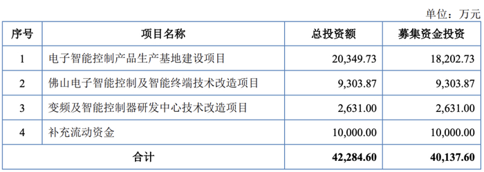 根据申请文件及问询回复:(1)发行人本次发行拟募集资金40,137.60万元用于募投项目建设,其中“电子智能控制产品生产基地建设项目”由子公司淮安尚研通过新建厂房实施,新厂区建设完成后,现有租赁厂房将不再继续使用,相应生产线及生产设备将陆续搬迁至新厂区。(2)“佛山电子智能控制及智能终端技术改造项目”拟对顺德都宁工业区现有厂房、现有产线及设备进行升级改造。(3)“变频及智能控制器研发中心技术改造项目”拟通过对顺德现有场地进行改造装修并购置研发设备实施。