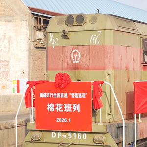 近日,一列满载1395吨棉花的“雪莲速运”棉花快速班列从新疆阿克苏站驶向山东滨州市小营站。该班列运行时速可达120公里,较普通货物列车约80公里的时速有显著提升,可降低企业的物流成本。