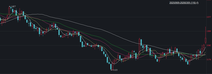 行情点评:2026年3月9日,纯碱期货主力合约SA605涨3.66%收1276元/吨,开盘即冲高涨停,随后午盘有所回落,全天减仓5万余手;玻璃期货同样高开震荡,午盘回落,主力合约FG605涨幅达3.18%收1104元/吨,最高触及1163元/吨,减仓9万余手,而成交量及日内振幅均显著放大,显示市场分歧较大。虽然目前纯碱和玻璃的基本面都较弱但是难抑宏观情绪和成本上升预期的带动。