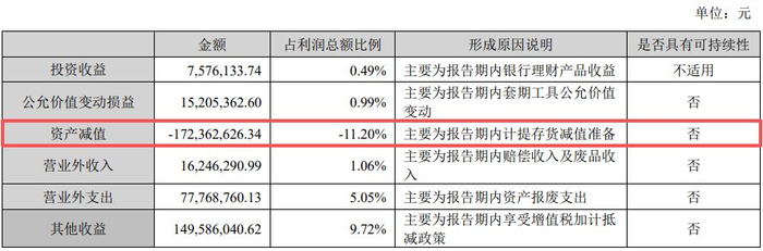 年报还显示,报告期内,天赐材料发生了1.72亿元的资产减值损失,主要原因为计提了存货减值准备;同时,非流动性资产处置损益为-5341.80万元,对整体利润造成了一定消耗。