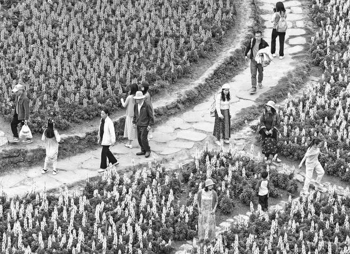 春日鲜花正开,南宁市民纷纷走出家门欣赏春天美景。