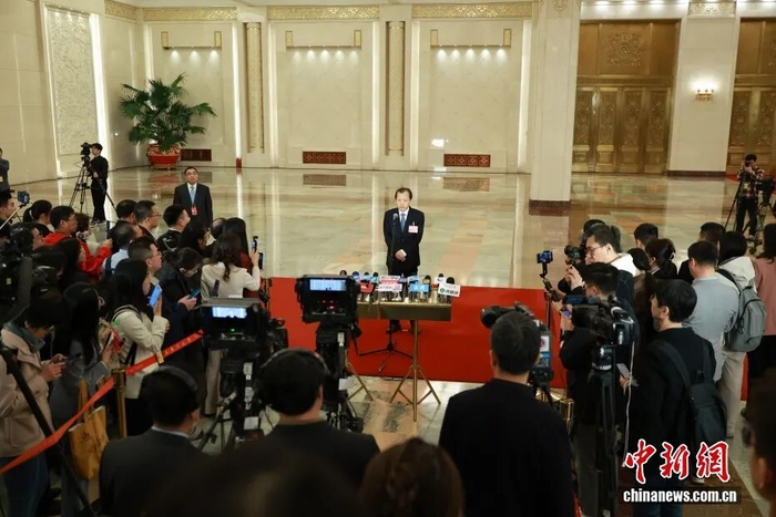 3月9日,十四届全国人大四次会议第二场“部长通道”集中采访活动在北京人民大会堂举行。图为中国交通运输部部长刘伟接受媒体采访。中新社记者 蒋启明 摄