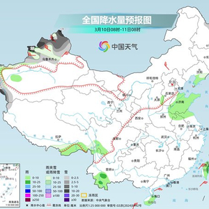 央视网消息:据中国天气网消息,今明两天(3月10日至11日),全国大部地区晴多雨少,气温普遍回升,南方大部和西北部分地区最高气温将升至20℃以上。与此同时,一股较强冷空气蓄势待发,即将带来一轮大范围降水、降温过程,需持续关注。