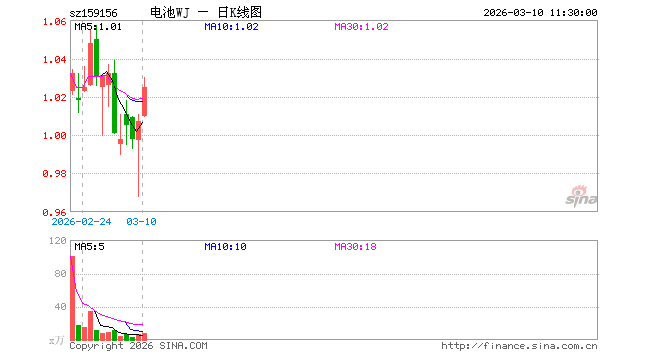 电池ETF万家(159156)涨1.79%,半日成交额805.41万元