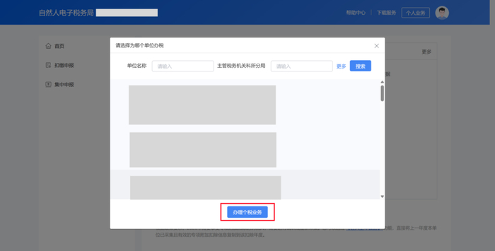 步骤二:点击【单位办税】后选择对应企业,点击【办理个税业务】。