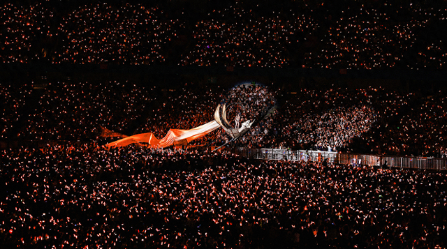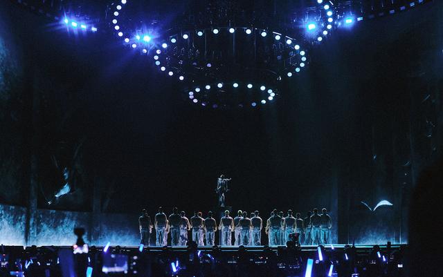 整场演唱会由多项巨型装置串联成完整世界观,巨剑、巨型书本、多种奇幻生物、山丘巨人等,每一件装置都并非是单纯的舞台背景,而是与表演深度融合的“角色”。