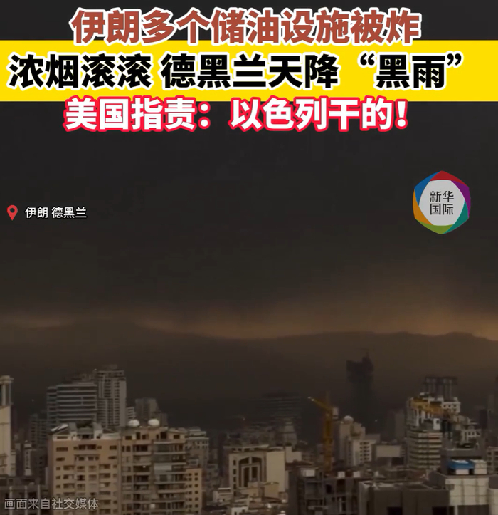 据新华社报道,位于伊朗首都德黑兰和厄尔布尔士省的4处储油设施及一处石油产品转运中心日前遭战机袭击,一时间火光冲天,黑烟升腾,当地更出现了罕见的“黑雨”天气现象。德黑兰居民反映出现呼吸困难。对此,世界卫生组织与联合国9日相继发出警告,指出此类袭击正在引发严重的环境与健康危机。