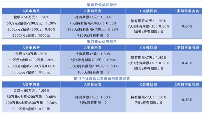 本基金管理人评估银河价值成长混合、银河核心优势混合、银河中证通信设备主题指数发起式基金的风险等级为中高风险,基金在代销机构的风险等级请以代销机构的风险等级评价结果为准。