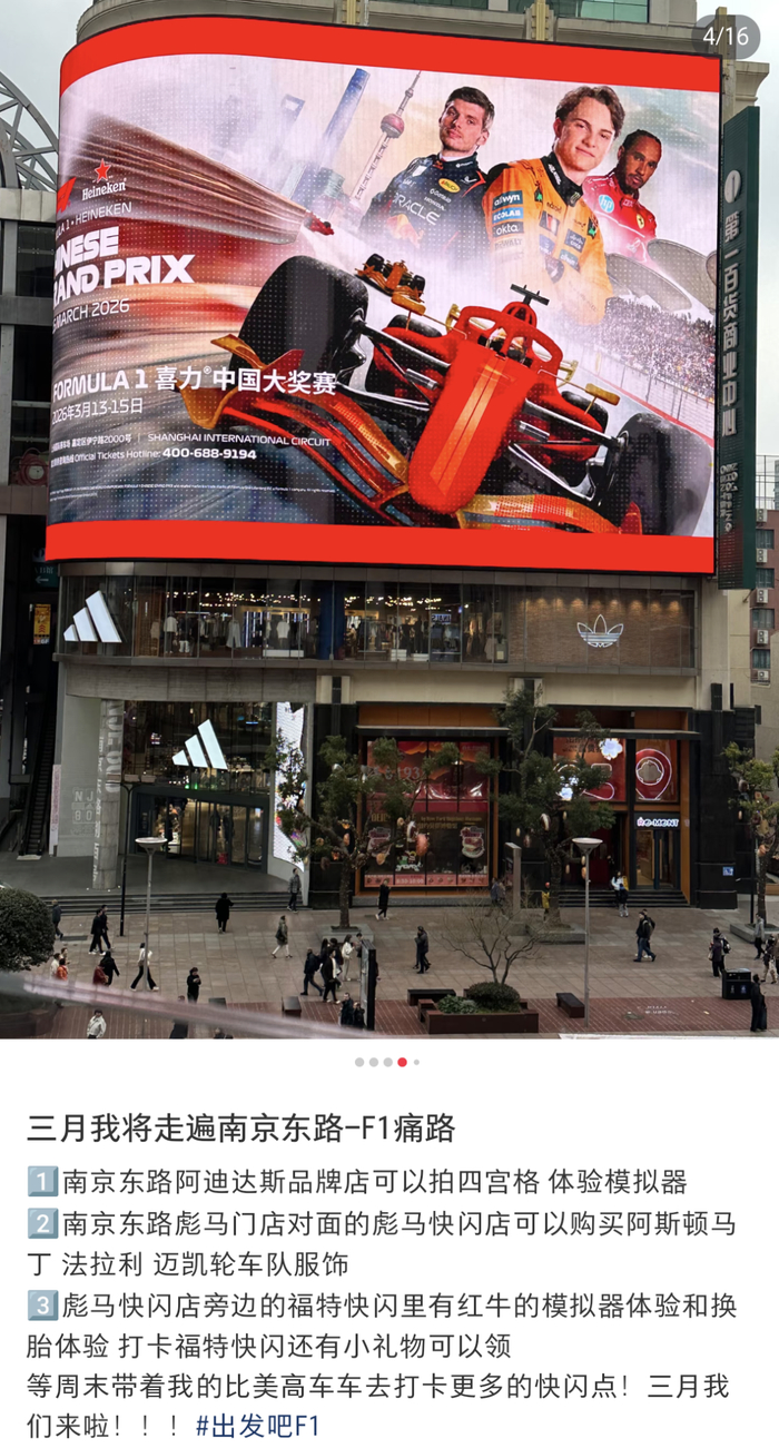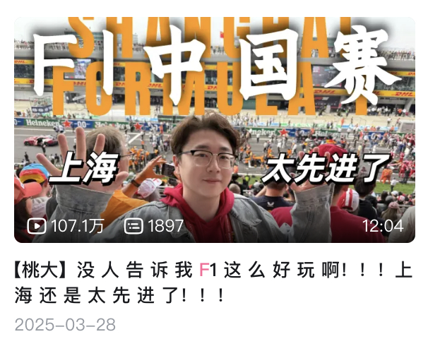 小红书职场博主陈祺(陈珍珠)也分享了她的创作经验:“我不讲赛车参数,就拍小白怎么选座位、赛场周围有什么好吃的。”她直言要“用非专业的视角拉低F1的门槛”:“让普通人觉得这不是遥不可及、硬融也融不进去的圈子,而是大家可以亲身参与的城市活动。”