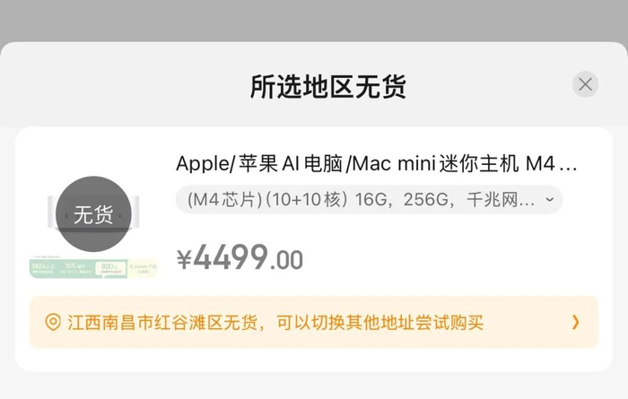 苹果官方客服证实,上海、苏州、杭州等地的零售店也已无现货。目前,中国大陆地区仅有济南、青岛等少数城市的零售店有少量库存。客服人员表示:“不知道为啥这段时间Mac mini卖得特别火爆,上海的零售店很少有货。”