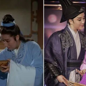 茅威涛与何赛飞跨越四十年的合作,左图为越剧电影《五女拜寿》(1984),右图为晚会节目《新龙门客栈·江湖一梦》(2024)。