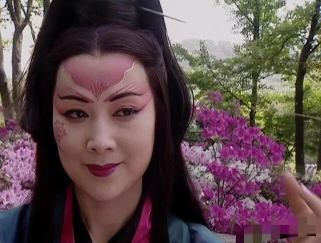 我回杭州试妆时,张纪中还不放心,怕我逃掉,“押”着我一起回去。蓝老师非常厉害,她在我脸颊画了一朵花,眼尾和眉尾挑起来,“眉飞色舞”,并没有完全像青衣的样式,而是有点夸张,像一个“花妖”。这种思路有点像杨丽萍演的孔雀妆造,像傩戏面具、偶戏,带有一点东方不败自宫后的扭曲和变异。