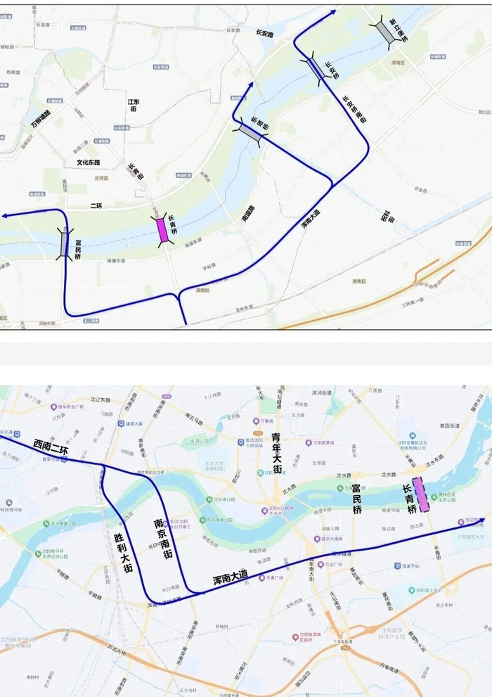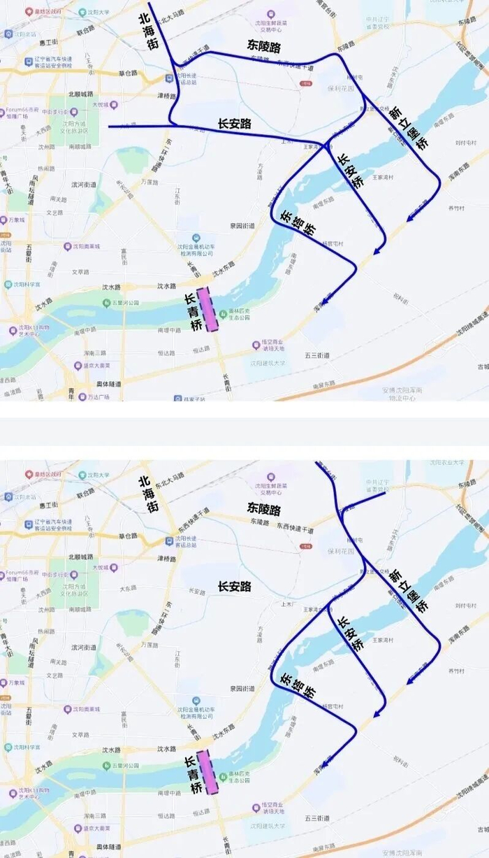 浑南与市区往返建议绕行长安桥、东塔桥、富民桥等,铁西、于洪、东一环/二环去往浑南也有对应绕行路线,大家提前规划出行!