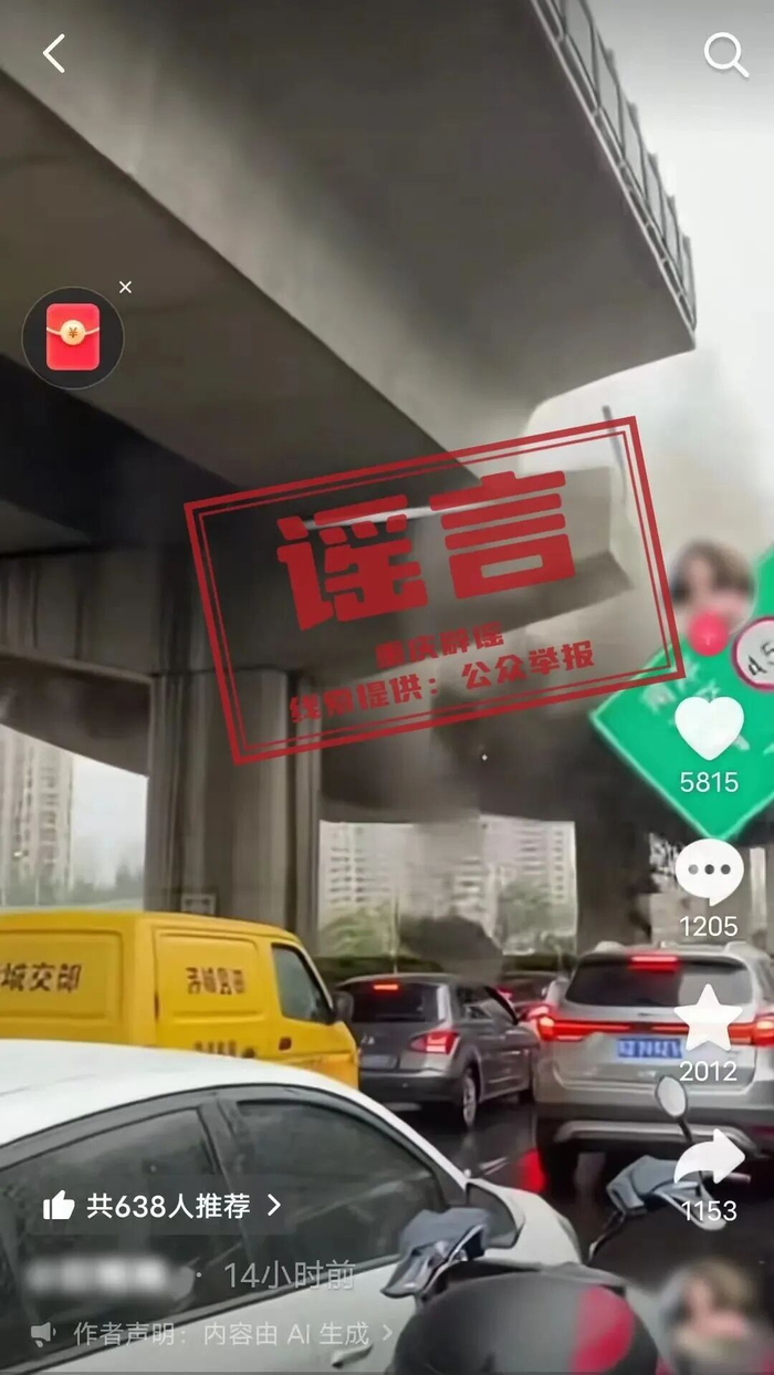 3月8日,有网民在互联网平台发布视频,显示“南岸立交”发生坍塌事故,引发关注。经核实,网传信息系谣言。