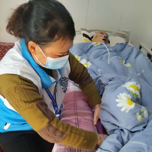 “洗脸、洗屁股、换尿不湿,发现他衣服尿湿了,再把身上擦一下,衣服换一下,然后再泡一下脚。”小裘一边熟练地为老人按摩,一边介绍当天的服务流程。泡脚约20分钟后,老人舒服地睡着了,小裘便放轻动作,为他盖上被子,转而进行腿部按摩。