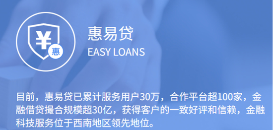 企惠小贷其中一个官网显示,成立于2016年6月,是泰兴市首家互联网科技小额贷款公司。主要产品为惠易贷,且惠易贷已累计服务用户30万,合作平台超100家,金融借贷撮合规模超30亿。其作为一家江苏省的小贷公司,却宣传金融科技服务位于西南地区领先地位。