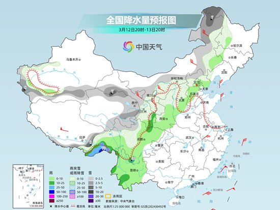 其中,12日夜间至13日,甘肃至内蒙古东北部、黑龙江西北部将出现小到中雪,局地大雪。13日夜间至14日,甘肃南部、青海东部、陕西北部、山西北部降雪将明显加强,多地将出现大到暴雪。