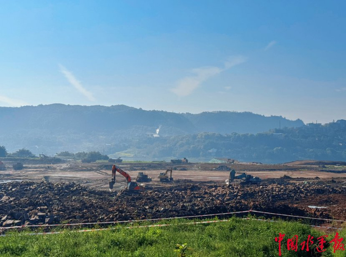 “目前,场平工程已完成70%,土石方工作正稳步推进。”四川泸州江北港产业园区投资发展有限公司现场负责人张扬介绍,本月底项目将完成前期场平工作,正式启动水工结构和后方陆域部分施工,预计2026年完成项目总体工程量的35%。