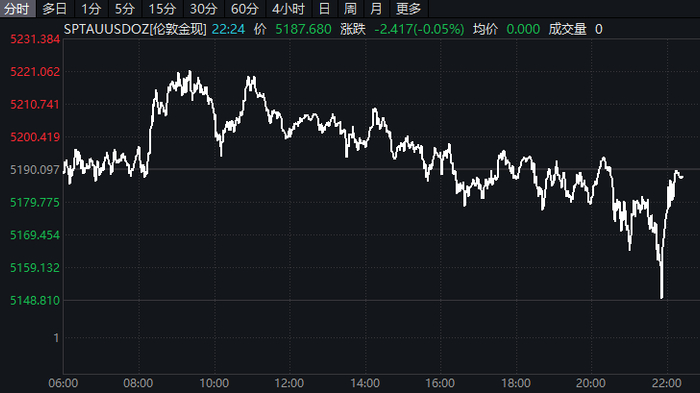 晚间,现货黄金一度跳水失守5180美元/盎司,截至发稿跌0.05%。伦敦银现跌超3%,报85.24美元/盎司。