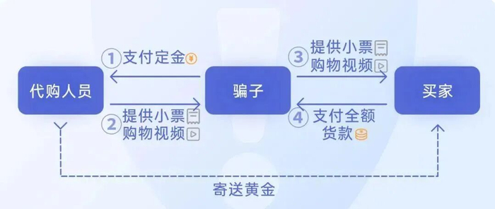 不仅如此,代购本质上是一种高度依赖买卖双方信任的非正规交易,这让不少诈骗分子乘虚而入。曾有媒体报道过老铺黄金“假代购”的双向欺诈手段。这些行骗者精准拿捏了消费者贪图高额折扣又急于拿货的心理,先是伪装成普通买家,仅用极低的定金,就从真实代购手中套取了门店专属的纸质销售凭证及实物视频。紧接着,他们迅速切换成代购身份,用骗来的单据物料吸引消费者下单。据报道披露,目前已有多名受害者落入此类陷阱,累计涉案金额高达数十万元。