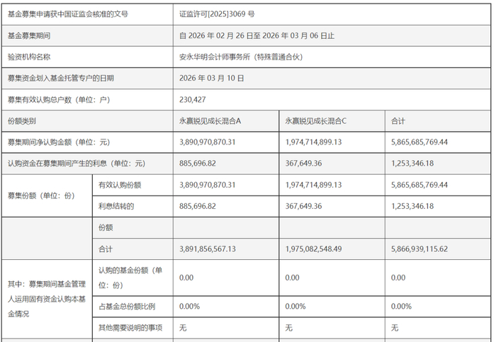 3月11日,永赢锐见成长混合基金发布基金合同生效公告,发行规模为58.67亿元,募集有效认购总户数为230427户。这是2022年以来,认购户数最多的主动权益类基金。