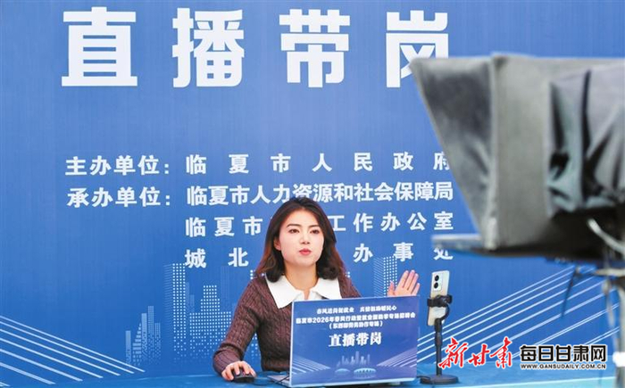 临夏市2026年“春风行动”暨就业援助季专场招聘会直播带岗现场。