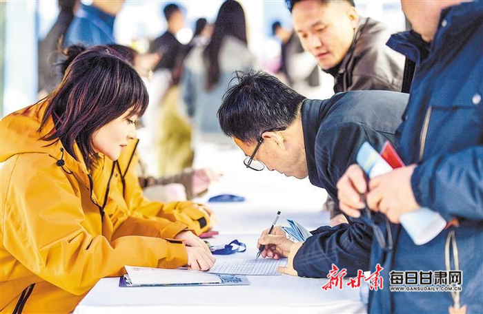 临夏市2026年“春风行动”暨就业援助季专场招聘会上,求职人员现场签协议。