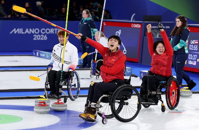 据新华社报道,在11日进行的米兰冬残奥会轮椅冰壶混双决赛中,中国组合王蒙/杨金桥以9比7险胜韩国组合白惠珍/李永锡,夺得冬残奥会历史上首枚轮椅冰壶混双金牌。