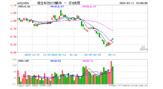3月11日恒生科技ETF鹏华(520590)份额增加1100.00万份,最新份额2.81亿份,最新规模2.48亿元