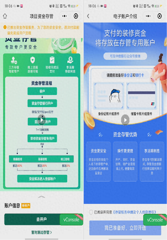贝壳整装给出的解决方案是:引入银行作为独立第三方,建立“节点验收、双向确认、银行拨付”的闭环机制。消费者的装修款项直接存入中信银行专用存管账户,不进入企业经营体系,产生利息归消费者所有。工程被拆分为水电验收、基装验收、竣工验收等关键节点,按60%、35%、5%的比例分批次解冻,每个节点经业主确认满意后,银行才将对应款项划转至装修企业。
