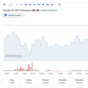 (WTI原油期货15分钟走势图 来源:英为财情)