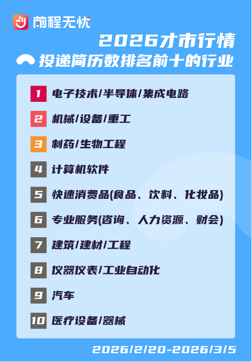 纵观历年职场规律,春节长假复工初期,往往是全年人才市场求职活跃度与投递意愿的双重高峰期。在这一关键节点,个人求职端的市场触觉往往先于企业端苏醒。聚焦节后求职黄金窗口,前程无忧51job的数据显示,以硬核科技为代表的战略性新兴产业正成为吸纳人才的主阵地,而求职者的整体心态已步入理性与务实的新阶段。