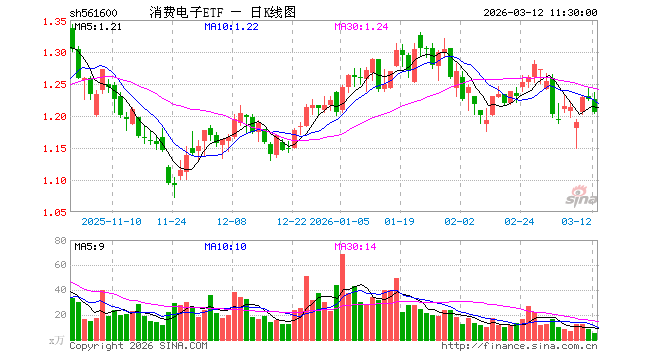 消费电子ETF(561600)跌1.71%,半日成交额598.35万元