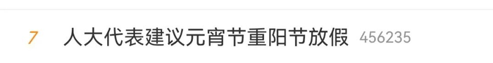 日前,“人大代表建议元宵节重阳节放假”相关话题登上微博热搜。