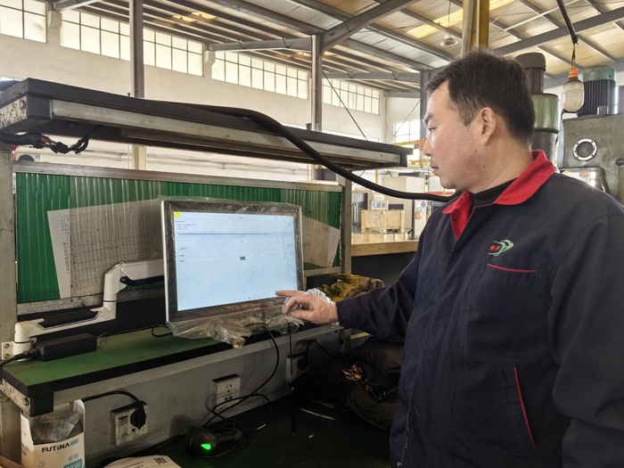 3月6日,在衡水市景县河北恒兴机械有限公司生产车间,设备运转、机械轰鸣,一工控屏幕上正显示着设备状态、工艺参数等相关生产数据,工人轻轻一点屏幕,设备便按照客户订单开始加工生产。