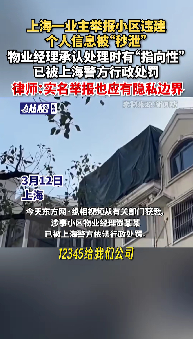 业主举报违建个人信息遭泄露续:物业经理被上海警方行政处罚!