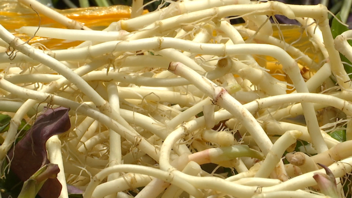 温度升高之后,青菜很快就抽芽了,菜心就是青菜顶部新长出的一段嫩芽,如今正是鲜嫩的好时节。