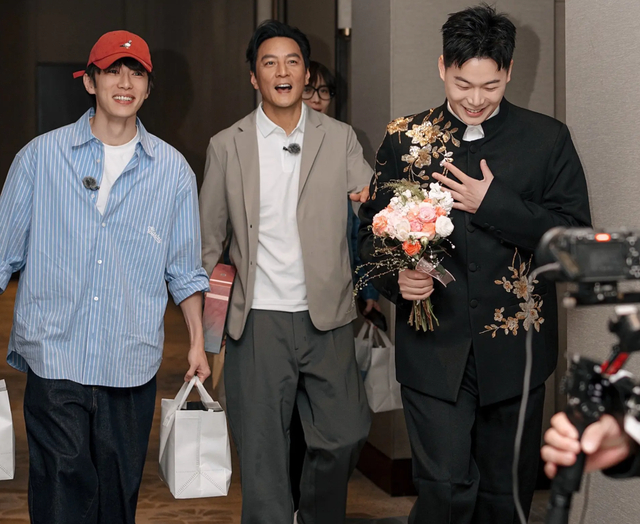 近日,知名艺人吴彦祖、代旭、井胧在录制综艺节目期间,接到一份外送订单,偶遇一对新人婚礼正在接亲,三人直接加入伴郎团助力新郎!