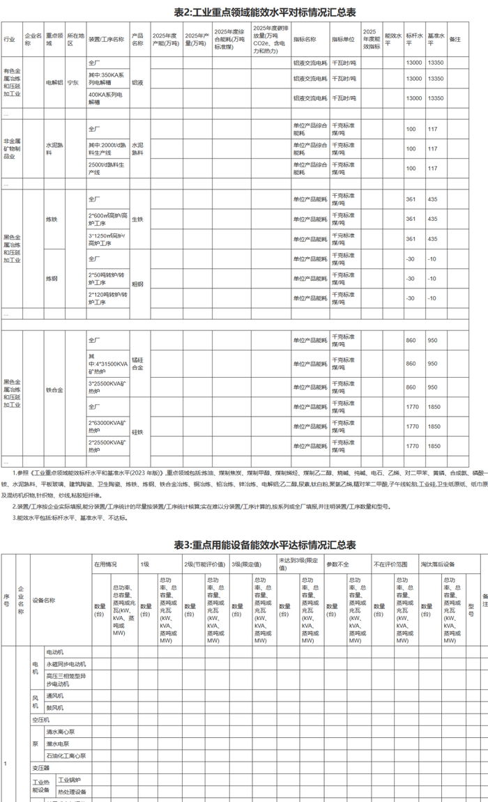 (二)单位产品能效水平达标对标情况。按照国家强制性能耗限额标准及《工业重点领域能效标杆水平和基准水平(2023年版)》《工业企业单位产品能源消耗限额》(DB64/T1147-2022)等要求,对电解铝、钢铁、水泥、铁合金企业2025年度单位产品能效水平达标对标情况开展节能监察。
