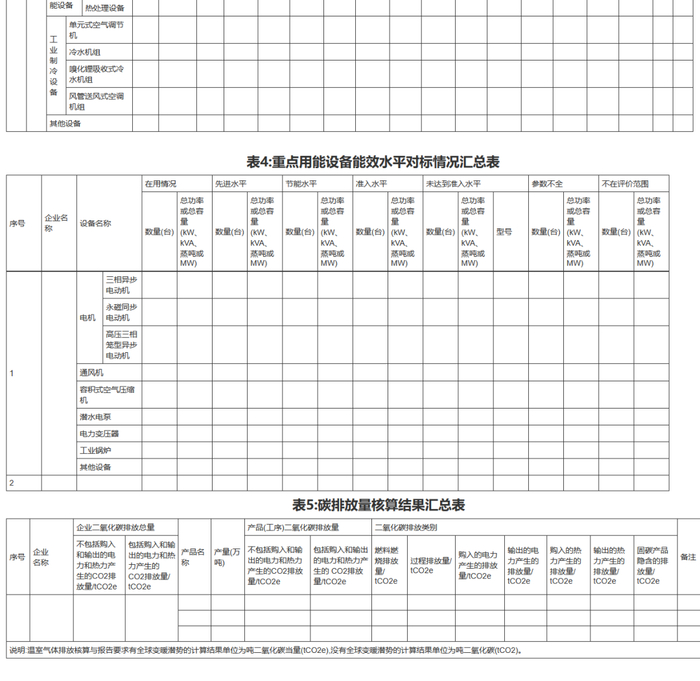 2.节能监察结果汇总表(表1-表5)