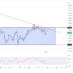 据图所示,重回5200美元下方后,图中趋势线或继续限制金价的上行空间,若能有效突破5175将再次挑战5200/35区域,但仍需注意反弹回落风险。