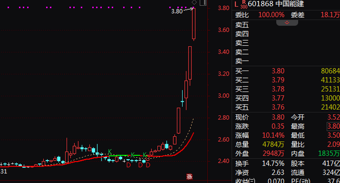 超57亿主力资金净流入!601868,尾盘涨停!近5天3板!