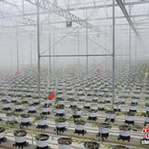 图为蓝莓种植大棚正在浇灌。陆远培 摄