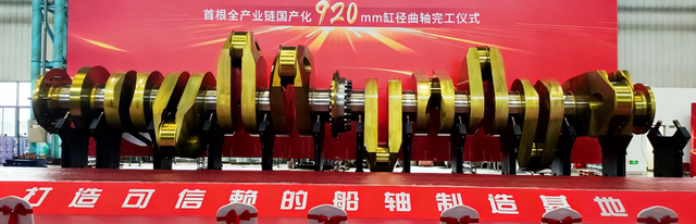 此次成功研制的920毫米缸径单段曲轴最大重量达208.3吨、曲轴总长20.19米,为全球超重船用曲轴之一。它的诞生不仅填补了国内900毫米及以上缸径大型低速机船用曲轴的技术空白,更以自主知识产权打破了国外技术壁垒。