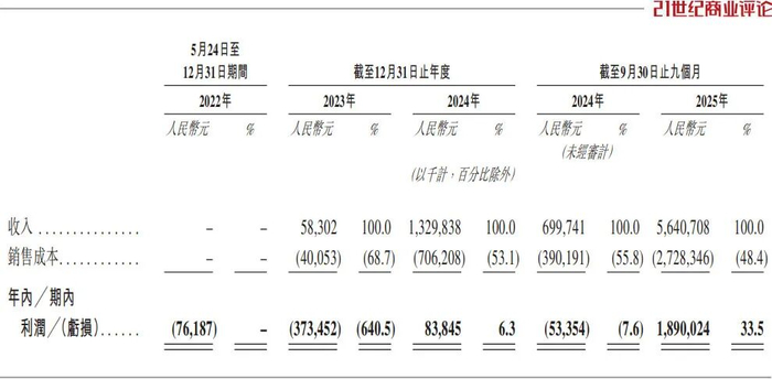 利润方面,2023年净亏损3.73亿元,2024年扭亏为盈;2025年前9个月,已飙升至18.9亿元,毛利率为51.63%。