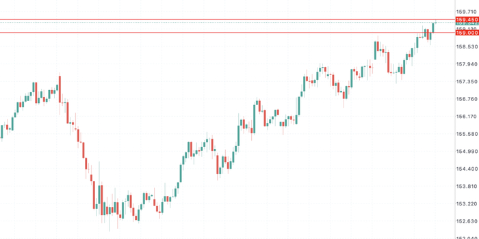 周四交易时段,美元兑日元扩大涨幅,日内最低测试158.56水平,最高触及159.28水平。