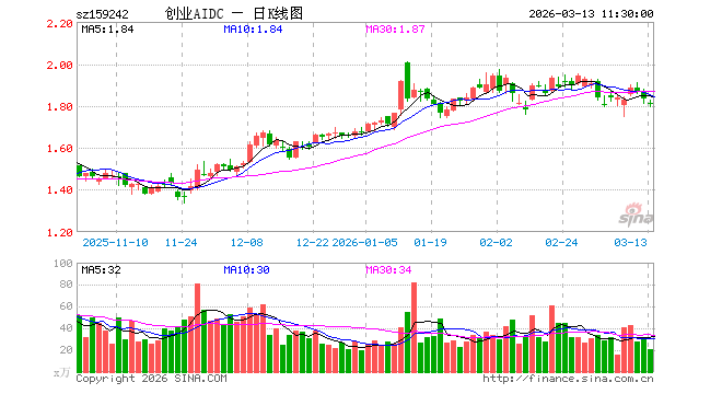 创业板人工智能ETF大成(159242)跌1.53%,半日成交额3843.45万元